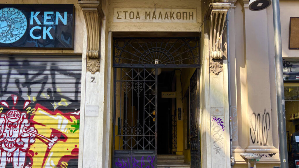 Η χαρακτηριστική Στοά Μαλακοπής, ένα κτήριο που γλίτωσε από τη μεγάλη πυρκαγιά του 1917, στέκει ακόμη στην καρδιά της Βαλαωρίτου.