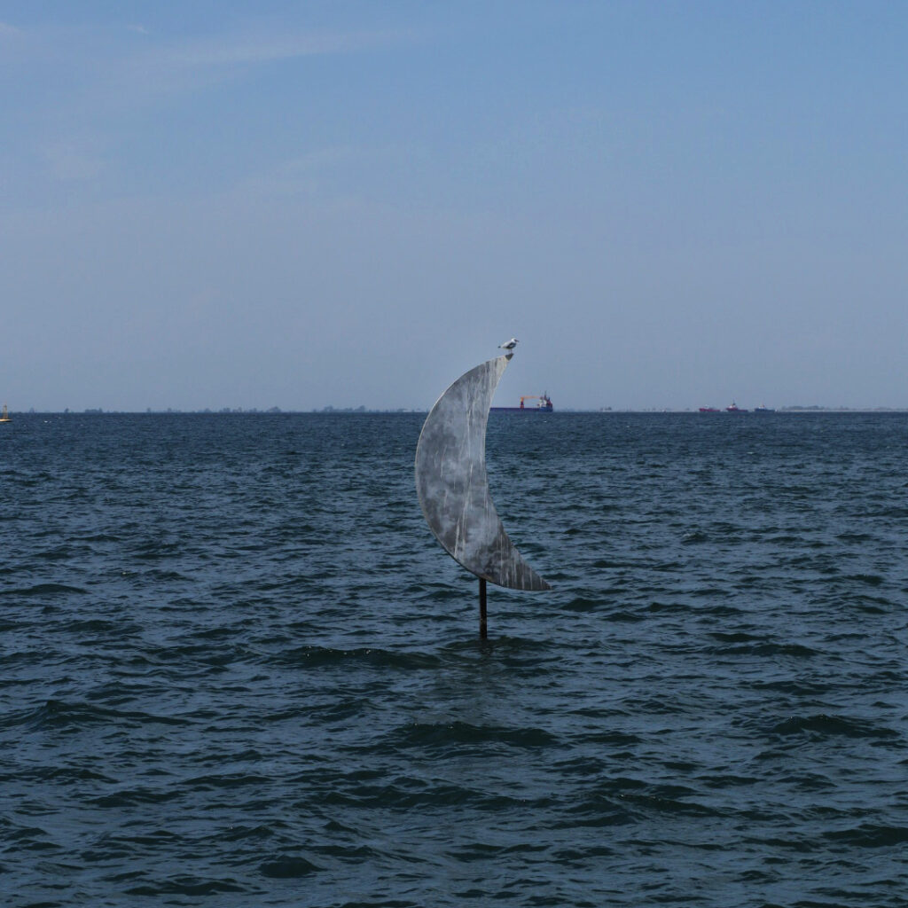 Λίγα μέτρα πιο αριστερά βρίσκεται ένα ακόμη γλυπτό μέσα στα νερά του Θερμαϊκού, το «Φεγγάρι». Δημιουργός του είναι ο Παύλος Βασιλειάδης και αφορμή για το έργο αποτέλεσε επίσης η ανακήρυξη της Θεσσαλονίκης ως Πολιτιστικής Πρωτεύουσας της Ευρώπης. Τις βραδινές ώρες φωταγωγείται και η αντανάκλασή του στα νερά του Θερμαϊκού προσδίδει μια ιδιαίτερα ρομαντική ατμόσφαιρα.