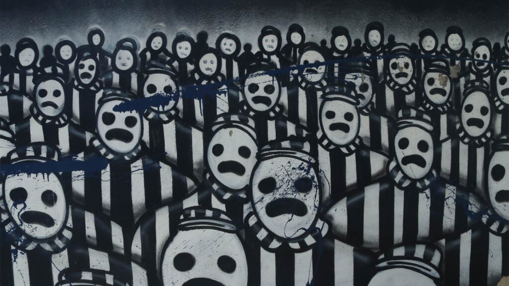 Γκράφιτι στον Παλιό Σιδηροδρομικό Σταθμό που απεικονίζει Εβραίους κρατούμενους.