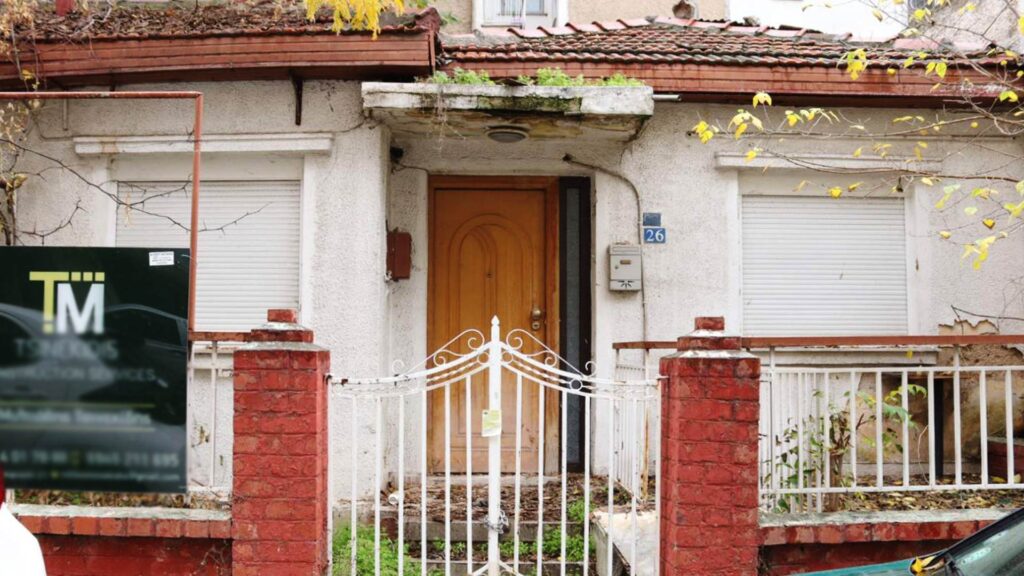 Λίγο πιο πάνω, στην οδό Τυρολόης — εκεί όπου η γειτονιά χαμηλώνει και η πόλη μοιάζει να ησυχάζει — στέκονται ακόμη τρία συνεχόμενα σπίτια του Ταμείου Πρόνοιας, από τα ελάχιστα που έχουν παραμείνει ανέπαφα στην περιοχή.