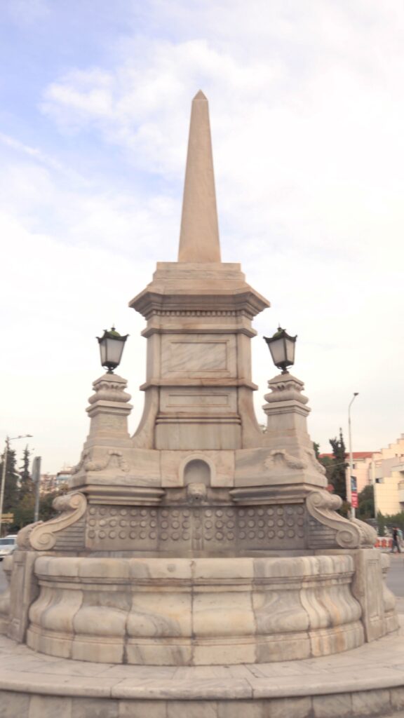 Λίγα μέτρα πιο πέρα, στον δημόσιο χώρο, ο οβελίσκος στο κέντρο της Θεσσαλονίκης, στην Πλατεία Συντριβανίου, δεσπόζει ως κάθετος άξονας μέσα στο αστικό τοπίο. Δεν λειτουργεί απλώς ως διακοσμητικό στοιχείο. Η κάθετη μορφή του, στραμμένη προς τον ουρανό, παραπέμπει στο φως και στη γνώση — έννοιες που συναντώνται και στη συμβολική σκέψη του τεκτονισμού. Αν και η προέλευσή του είναι πολύ παλαιότερη, με ρίζες στην αρχαία Αίγυπτο, με την πάροδο του χρόνου απέκτησε και έναν πιο φιλοσοφικό χαρακτήρα, συνδεδεμένο με την πνευματική αναζήτηση.