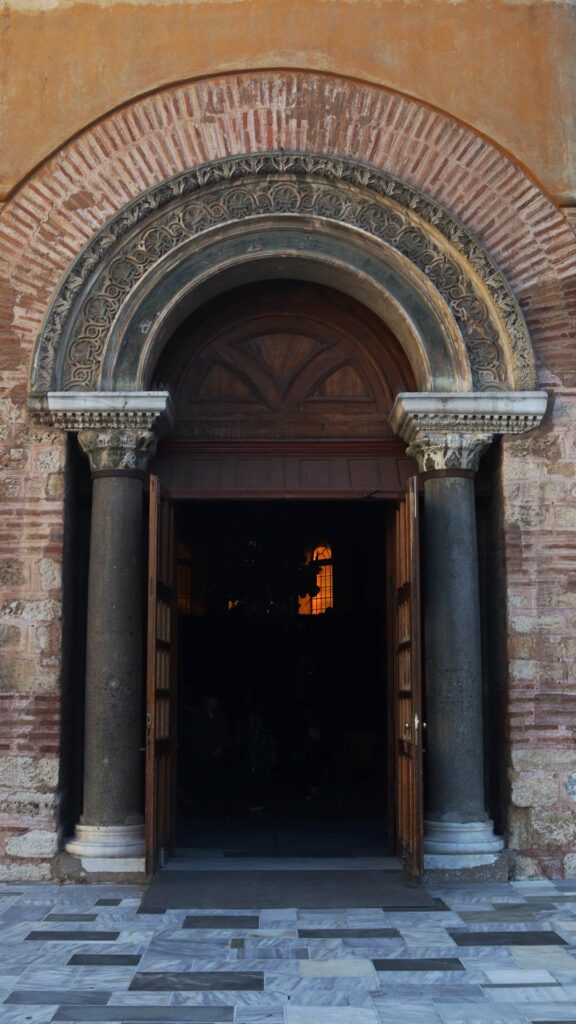 Η είσοδος του βυζαντινού ναού δεν αποτελεί απλώς ένα αρχιτεκτονικό στοιχείο. Το τόξο λειτουργεί ως σύνορο ανάμεσα στον κοσμικό και τον ιερό χώρο. Πριν ακόμη ο πιστός περάσει το κατώφλι, η αρχιτεκτονική τον προετοιμάζει για μια μετάβαση: από το φως της πόλης στο ημίφως του μυστηρίου.