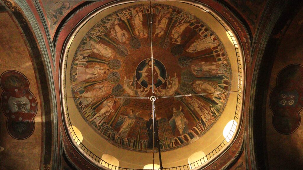 Ο τρούλος αποτελεί το συμβολικό «σύμπαν» του βυζαντινού ναού. Στο κέντρο δεσπόζει ο Χριστός, ενώ γύρω του αναπτύσσεται η ουράνια ιεραρχία. Η διάταξη αυτή δεν είναι διακοσμητική· αποτυπώνει την κοσμοθεωρία του Βυζαντίου, όπου ο κόσμος έχει κέντρο το θείο και όλα κινούνται γύρω από αυτό.